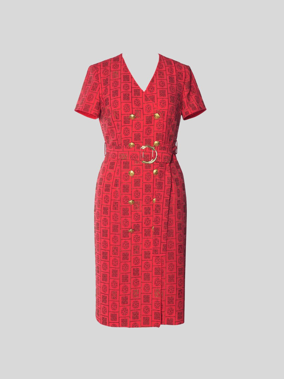 The Rubi Midi Dress is a '60s-inspired mod dream with its bright red geometric print.